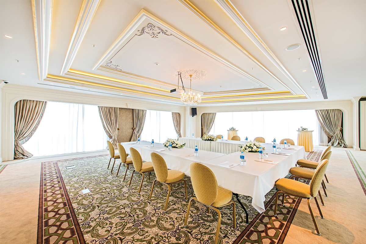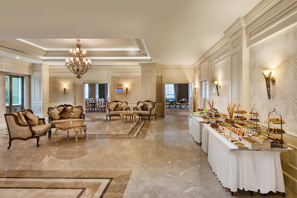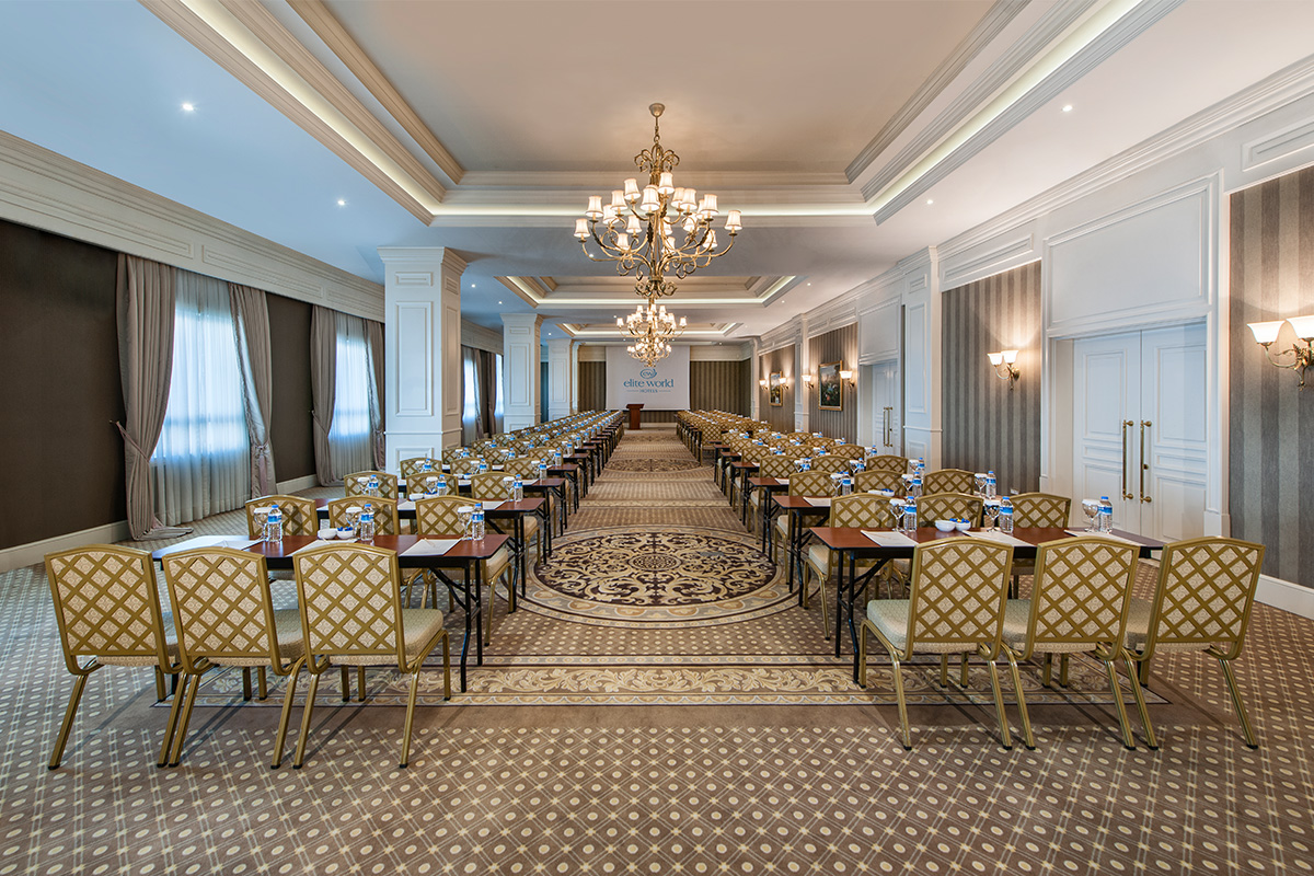 | Salon | Tiyatro | Sınıf | U Düzeni | Resepsiyon | Ziyafet | Alan m² | Boyutlar | Yükseklik |